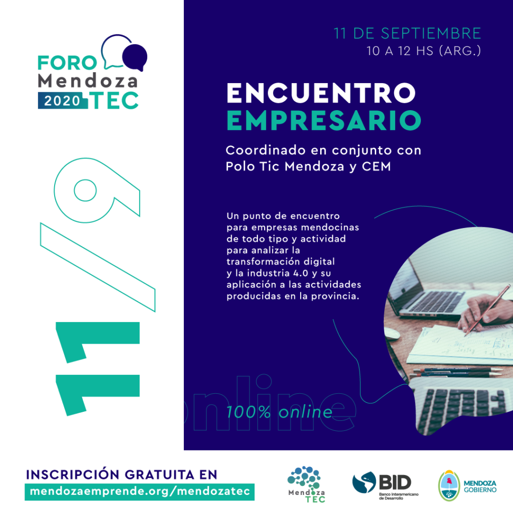 El CEM coordinará el Evento Empresario del Foro Mendoza TEC, junto con el Polo TIC Lo hará en forma online el viernes 11 de septiembre. El tema será “Desarrollando la Tierra del Conocimiento”. El próximo viernes 11 de septiembre, el Consejo Empresario Mendocino (CEM), junto con el Polo TIC, coordinará online el Evento Empresario […]